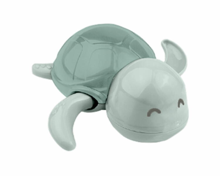 A bébi fürdővíz hőmérsékletének ellenőrzésére szolgáló hőmérő egy aranyos teknős formájában egyben egy eredeti játék is a nagyobb fürdési élményért. A teknős felhúzás után mozgatja a lábait és úszik a felszínen.